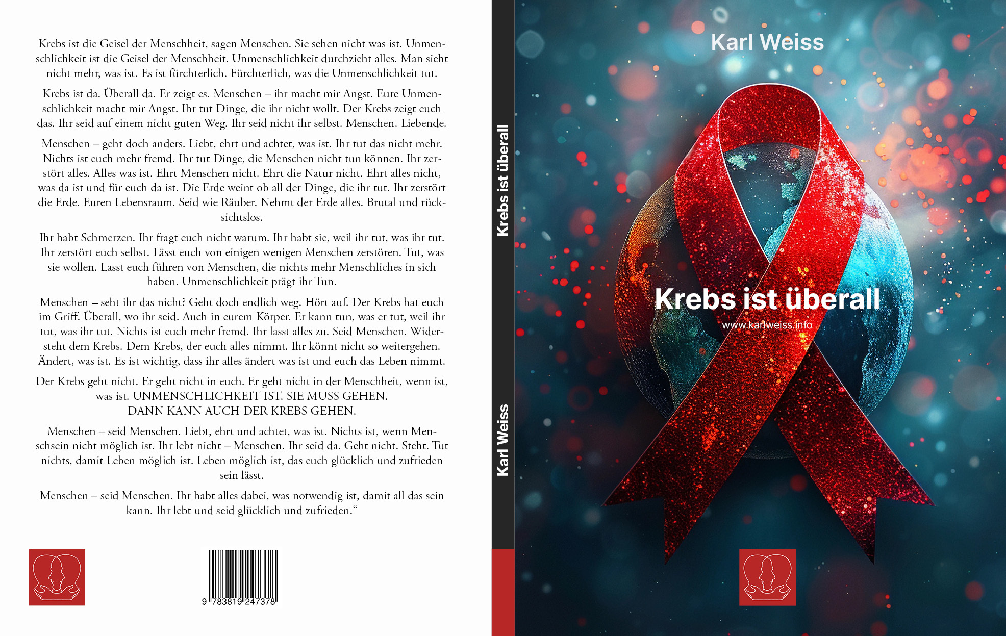 Krebs ist die Geisel der Menschheit, sagen Menschen. Sie sehen nicht was ist. Unmenschlichkeit ist die Geisel der Menschheit. Unmenschlichkeit durchzieht alles. Man sieht nicht mehr, was ist. Es ist fürchterlich. Fürchterlich, was die Unmenschlichkeit tut. Krebs ist da. Überall da. Er zeigt es. Menschen – ihr macht mir Angst. Eure Unmenschlichkeit macht mir Angst. Ihr tut Dinge, die ihr nicht wollt. Der Krebs zeigt euch das. Ihr seid auf einem nicht guten Weg. Ihr seid nicht ihr selbst. Menschen. Liebende. Menschen – geht doch anders. Liebt, ehrt und achtet, was ist. Ihr tut das nicht mehr. Nichts ist euch mehr fremd. Ihr tut Dinge, die Menschen nicht tun können. Ihr zerstört alles. Alles was ist. Ehrt Menschen nicht. Ehrt die Natur nicht. Ehrt alles nicht, was da ist und für euch da ist. Die Erde weint ob all der Dinge, die ihr tut. Ihr zerstört die Erde. Euren Lebensraum. Seid wie Räuber. Nehmt der Erde alles. Brutal und rücksichtslos.